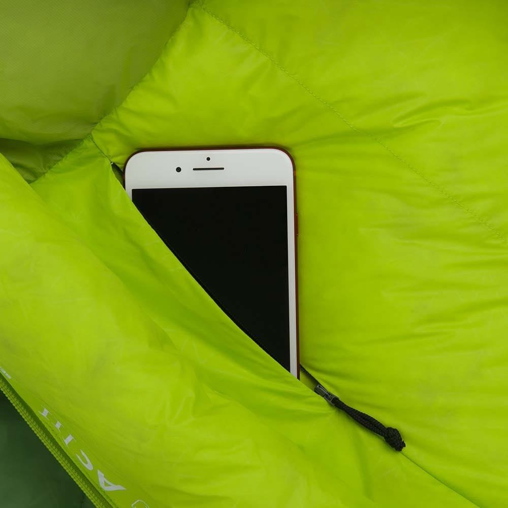As plumas do saco de dormir Ascent AcIII é de alta compressão e leve, pois possui um Loft de 750+, para maior isolamento e menor peso.
