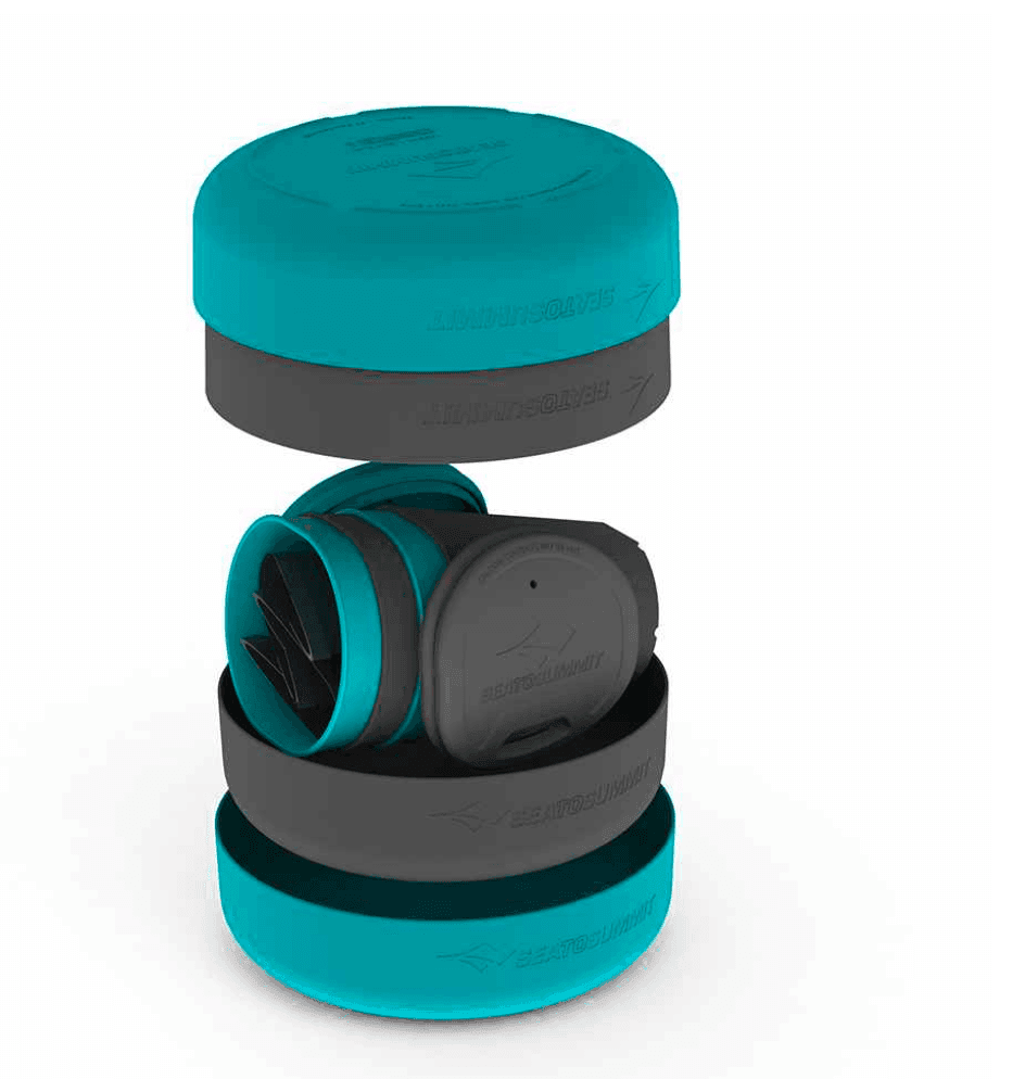 Este conjunto de oito peças que economiza espaço, é embalado na sua própria bolsa de armazenamento termoformada e convenientemente acomodado dentro dos novos potes Alpha. O conjunto acomoda-se de forma funcional e fornece proporções generosas. As tigelas internas e externas são de cores diferentes para facilitar o emparelhamento.