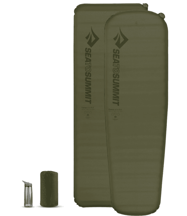 Colchão auto-insuflável Camp Plus, oferece conforto e calor que lhe permite usar o mesmo durante todo o ano. A perfuração horizontal Delta é uma tecnologia pioneira da Sea to Summit. O processo remove mais de 40% da espuma para reduzir peso e volume, mas não compromete o conforto e a durabilidade.