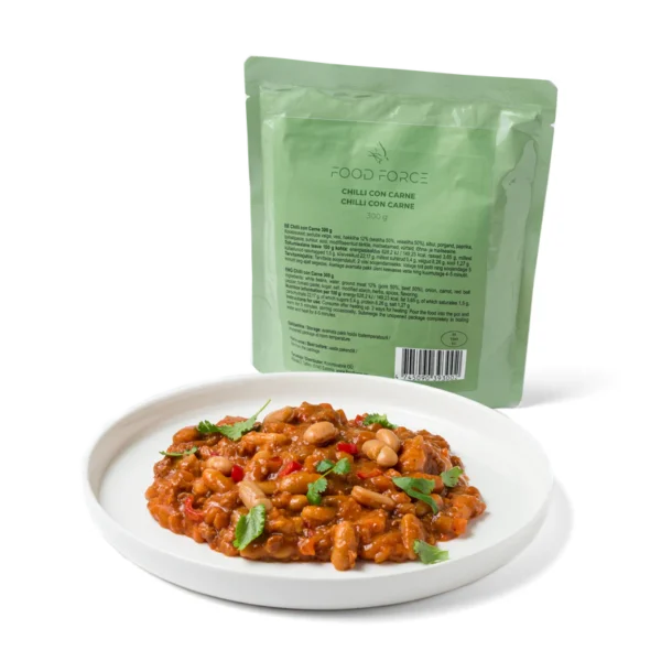Além disso, o Chili com Carne é uma refeição saborosa e fácil de preparar. Existem duas formas de aquecimento: você pode optar por aquecer na panela ou simplesmente mergulhar a embalagem fechada em água fervente, tornando o processo rápido e sem complicações. Dessa forma, você terá uma refeição quente e reconfortante, mesmo nos locais mais remotos.