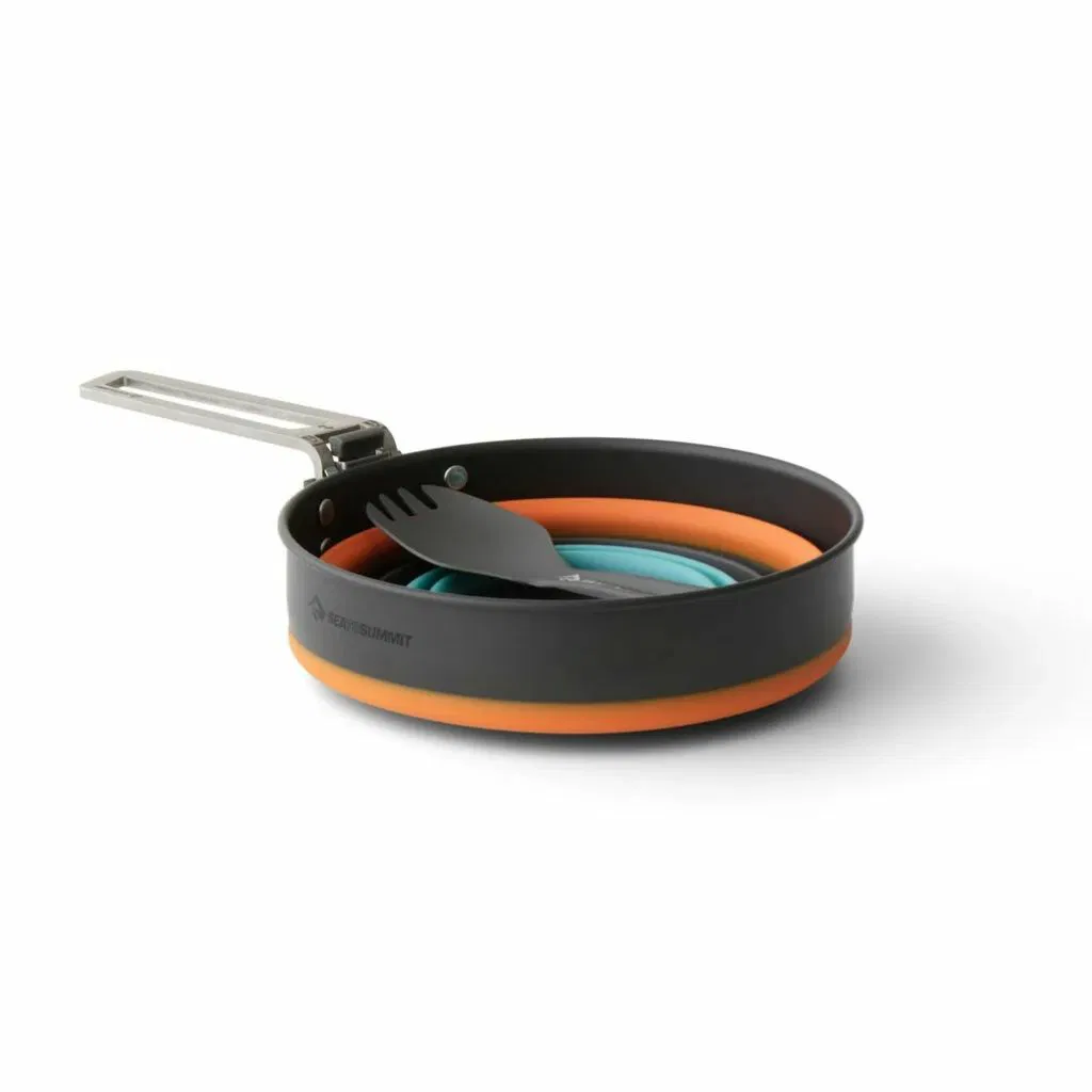 Compacto, leve e prático, inclui uma panela extensível de 1 litro, um copo e um garfo de colher de cabo curto, todos criados para economizar o máximo de espaço na mochila.