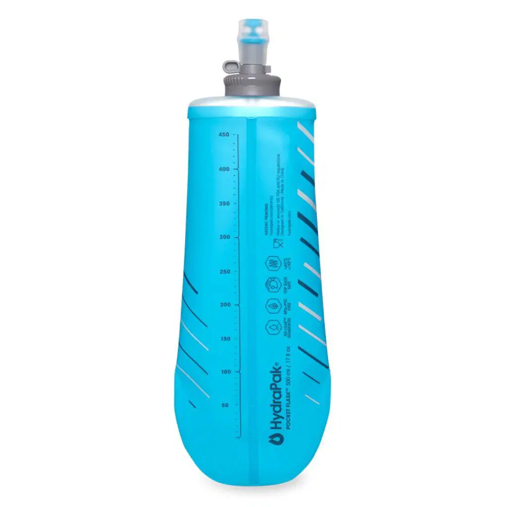 Garrafa flexível 500ml PocketFlask ultraleve e compacta. Ideal para trail running, corrida e atividades outdoor com máxima mobilidade.