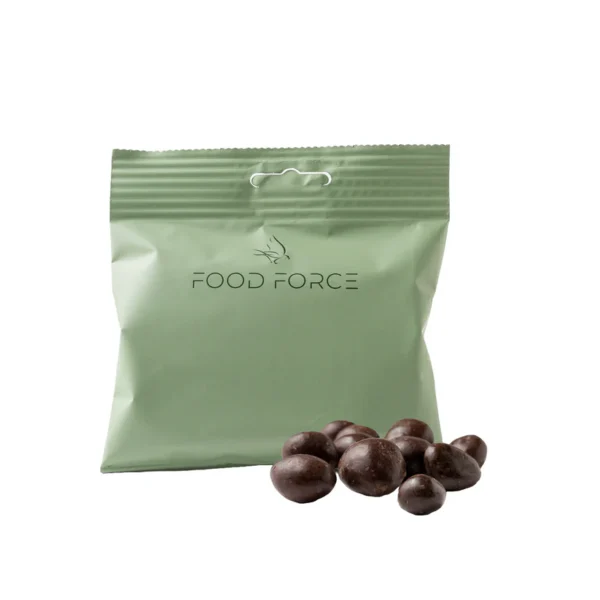 Este snack combina groselha cristalizada e chocolate negro para criar uma opção saborosa e prática. A mistura inclui 54% de groselha e 45% de chocolate com um mínimo de 44% de sólidos de cacau. Por isso, torna-se ideal para quem procura energia rápida e sabor genuíno.