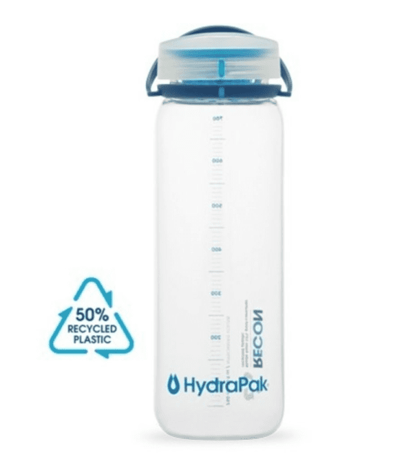 A garrafa reutilizável Recon 750 ml da Hydrapak oferece a possibilidade de hidratação reduzindo o mínimo impacto ambiental, uma vez que 50% do modelo é feito com material reciclado. Além disso, o plugue gira 180º, não sobe, para evitar que a água seja esticada a qualquer momento.