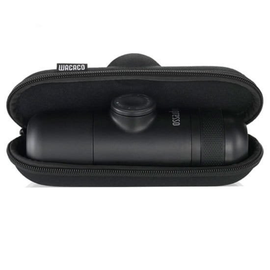 A bolsa protetora Minipresso é feita de material EVA durável e forro interior de tecido macio. É especialmente projetada para caber a Minipresso GR, NS ou CA. A bolsa ajuda a proteger contra impactos, arranhões e poeira. Com a adição da bolsa Minipresso, esteja pronto para sua próxima grande aventura.