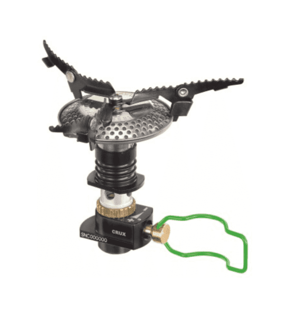 O fogão Crux é super compacto, os suportes do queimador são dobráveis, encaixando na cavidade da parte inferior do seu cartucho de gás!