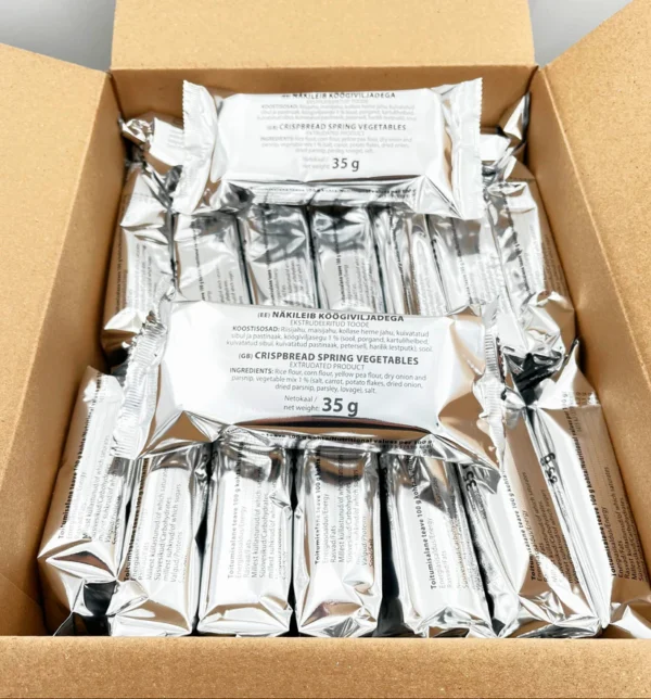 Este pão crocante é feito com farinha de arroz, farinha de milho, e farinha de ervilha amarela, além de ser enriquecido com vegetais desidratados como cebola, pastinaca e cenoura. Por esse motivo, ele apresenta um sabor autêntico e natural, sem conservantes artificiais. Logo, você pode saborear com confiança um produto de alta qualidade.