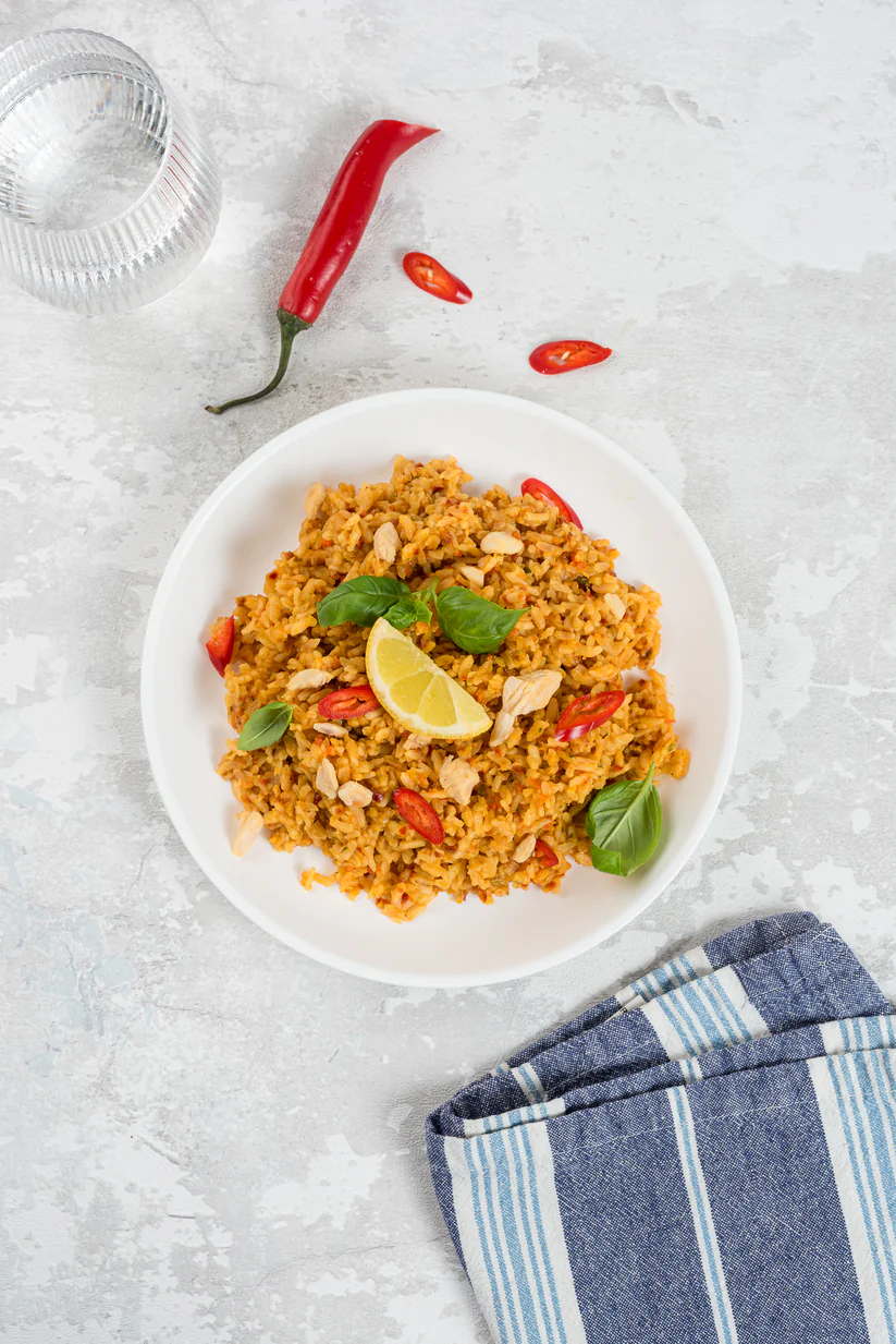 Dia 4: Mingau de aveia com baunilha, Arroz frito com frango, Ensopado mexicano com arroz
