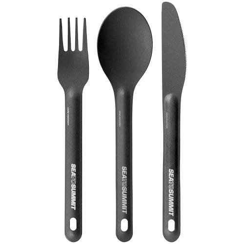 Os talheres AlphaLight utilizam um alumínio durável anodizado de grau aeronáutico combinado com um formato elegante, porém forte, para criar um utensílio extremamente leve a um preço surpreendentemente acessível. Ao anodizar fortemente o alumínio, ele forma uma espécie de “exoesqueleto” para que o formato dos utensílios seja mais fino e leve. Este invólucro endurecido também encapsula o alumínio, então não há risco de a liga se infiltrar nos alimentos.