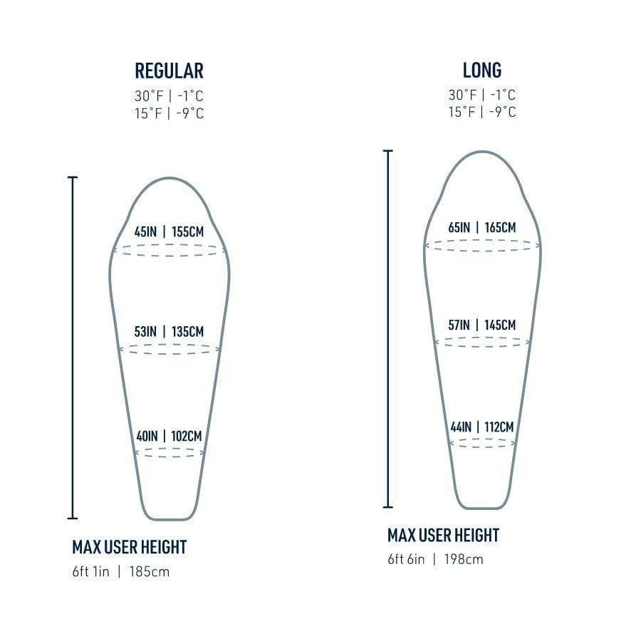 O design anatómico em forma de múmia do Spark Pro adapta-se perfeitamente ao seu corpo, maximizando a retenção de calor e assegurando um ajuste confortável e sem restrições. Além disso, o fecho de correr lateral YKK #5 de fluxo livre garante um funcionamento suave e sem problemas, enquanto o fecho de correr YKK #3 para os pés e ombros acrescenta um peso adicional mínimo para maior conforto.