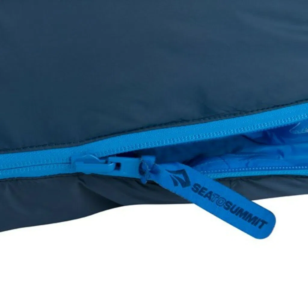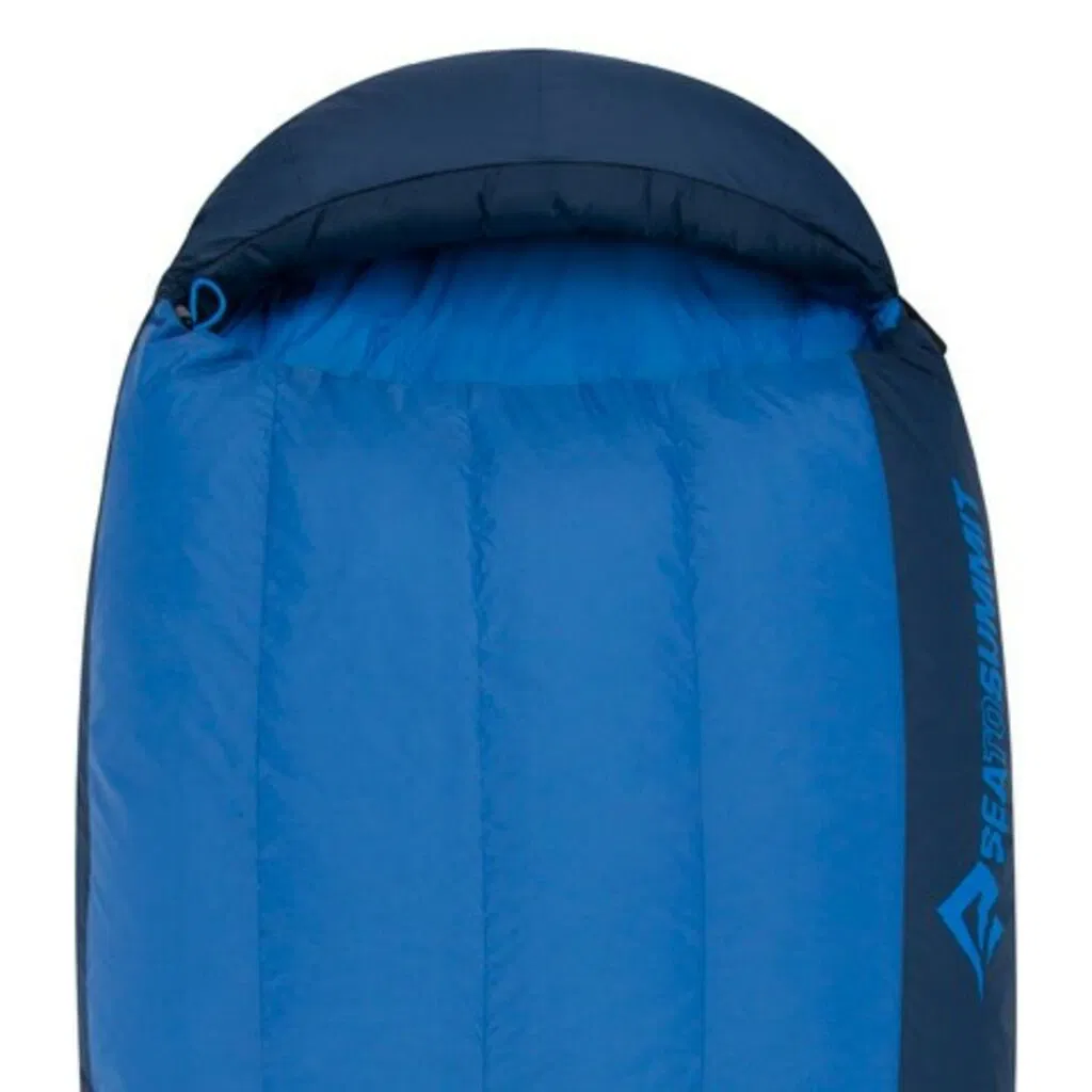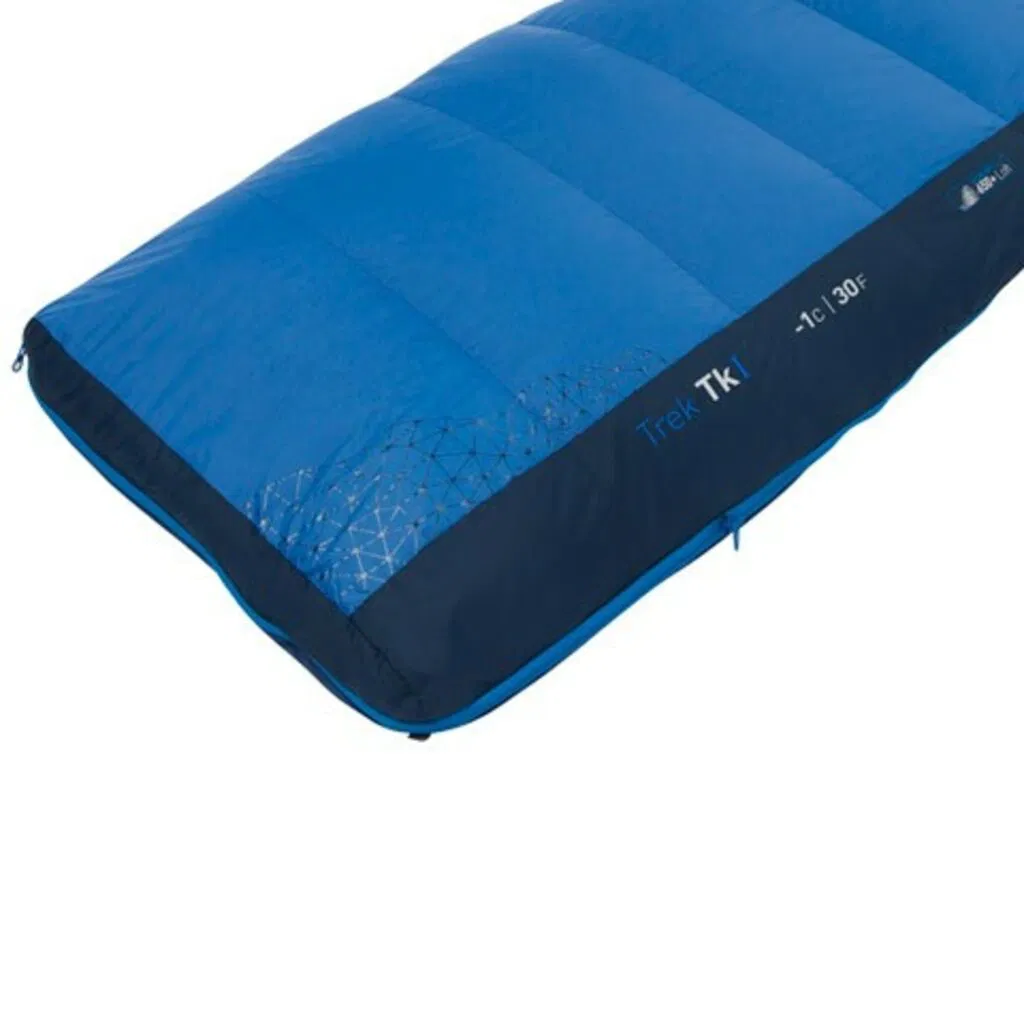 Saco de dormir Sea to Summit Trek TKI, leve e compacto, com isolamento em penugem 650+ Ultra-Dry Down™. Conforto até 5 °C, ideal para campismo e trekking.