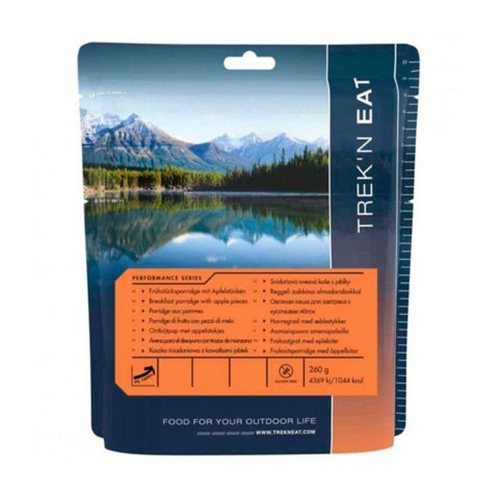 O mingau de aveia com pedaços de maçã é uma receita projetada para fornecer o máximo de calorias possível antes de realizar uma atividade física exigente. É por isso que eles fazem parte da série PS1000+ da Trekn’Eat. Com a aveia, é possível fornecer uma grande quantidade de carboidratos para manter o usuário com alta energia. Além disso, eles também contêm nutrientes como magnésio, ferro ou zinco.